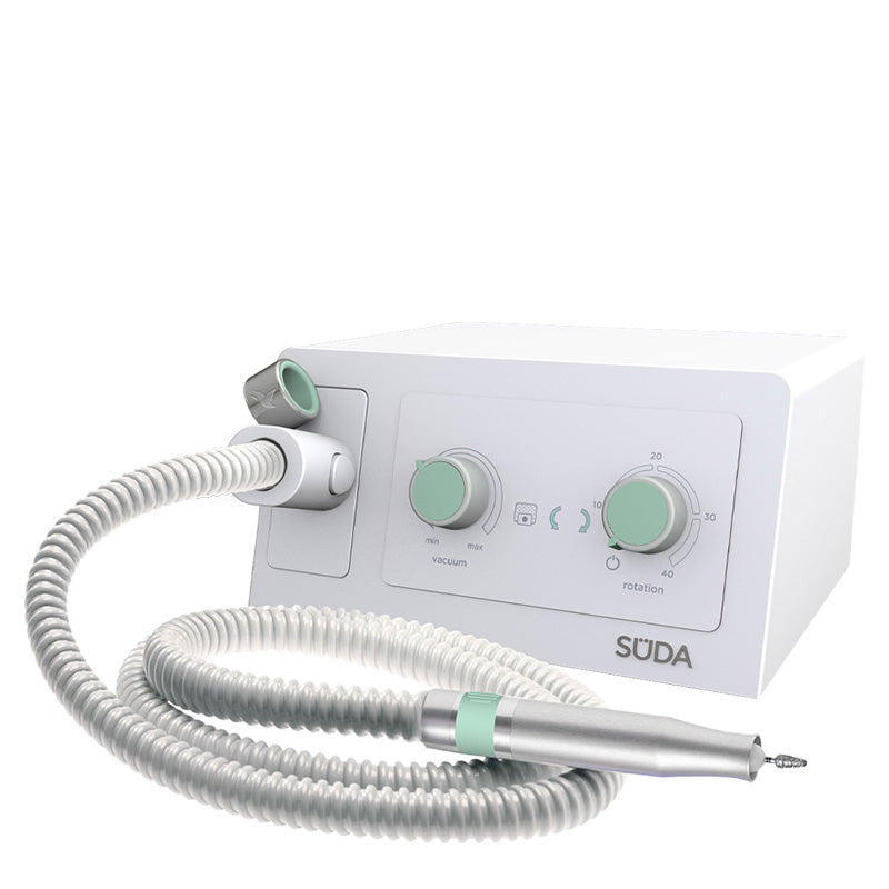 SÜDA V Eco K med borstlös mikromotor är lämplig för professionell fotvård. Den imponerar med ett enkelt, intuitivt användargränssnitt, stark sugkraft med minimalt ljud och ett nydesignat, ergonomiskt handstycke. Perfekt för dagligt bruk.