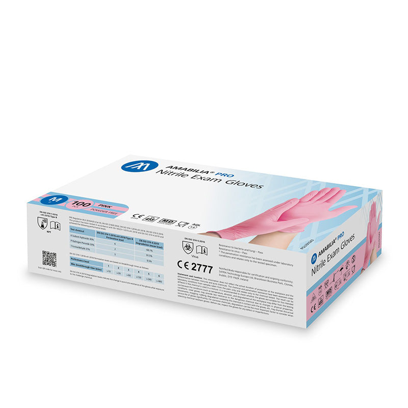 Nitrilhandske, rosa, M, 100-pack. Puderfria.